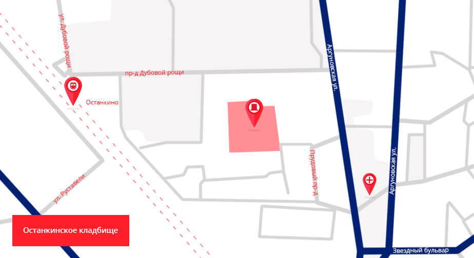 К похоронам, поминальным дням и памятным датам родным и близким покойных необходимо прибыть в некрополь. Актуальная информация о том, как доехать до Останкинского кладбища по наиболее удобным маршрутам, представлена здесь.