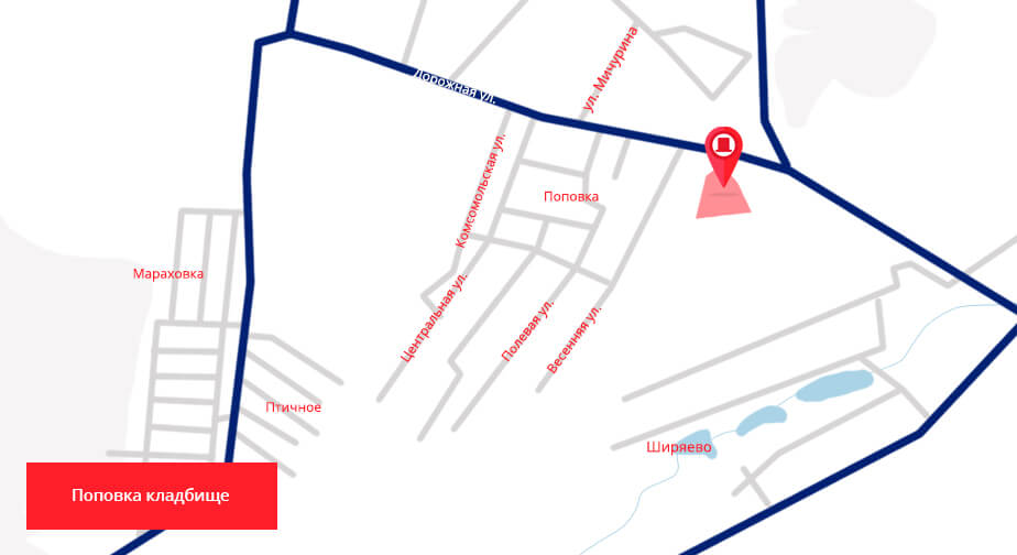 Доверенные представители службы Ритуал.рф помогут обосновать родственное подзахоронение в этом некрополе, тщательно подготовят и достойно проведут погребение на кладбище Поповка. Подробные консультации проводятся по телефону 8 (495) 459-0-100. Здесь же принимаются заказы на доступное и качественное ритуальное обслуживание. Наша линия связи работает круглосуточно, информационный сервис бесплатен.