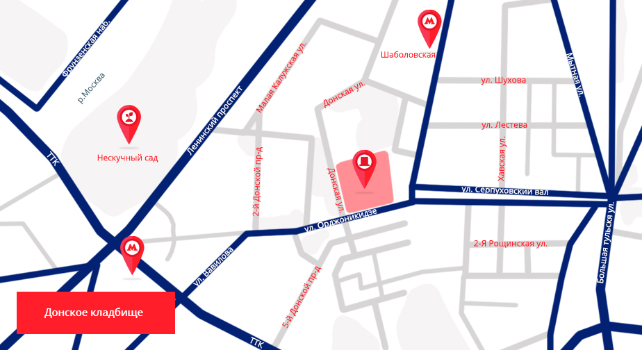 Адрес колумбария Донского кладбища: ул. Орджоникидзе, 4.