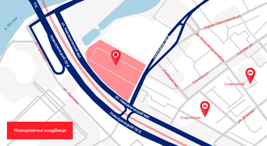 Адрес колумбария Новодевичьего кладбища: Лужнецкий проезд, 2.
