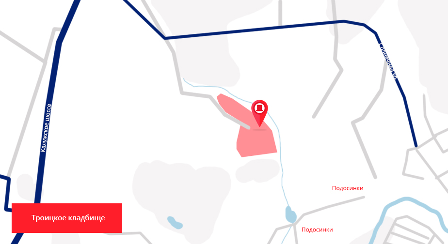 Адрес колумбария Троицкого кладбища: пос. Краснопахорское, д. Подосинки, 11а.