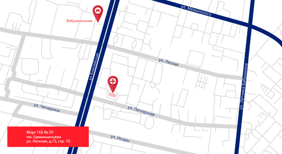 Адрес морга ГКБ № 20: ул. Ленская, 15, стр. 10.