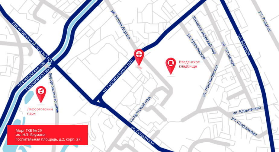 Адрес морга ГКБ № 29: Госпитальная площадь, 2, корп. 27.