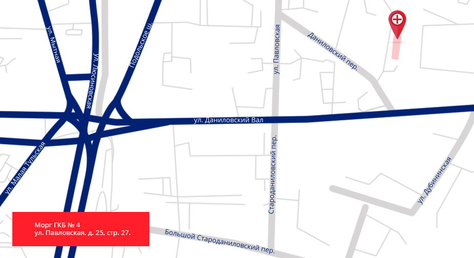 Адрес морга ГКБ № 4: ул. Павловская, 26, строение 27.