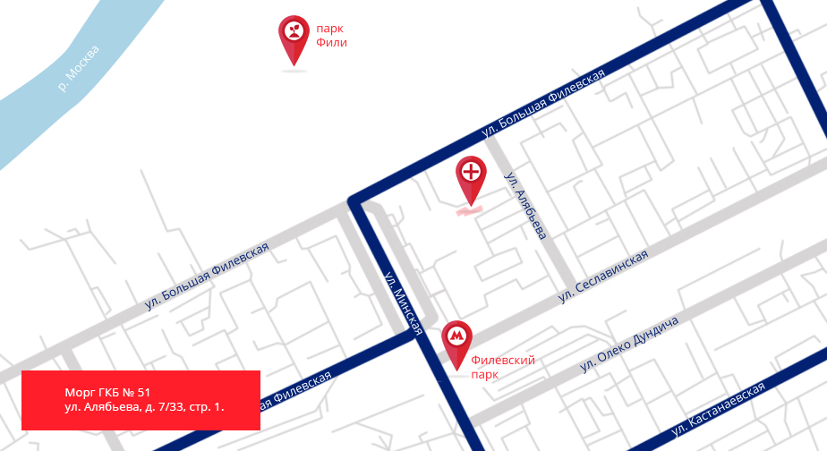 Адрес морга ГКБ № 51: ул. Алябьева, 7/33, с. 5.
