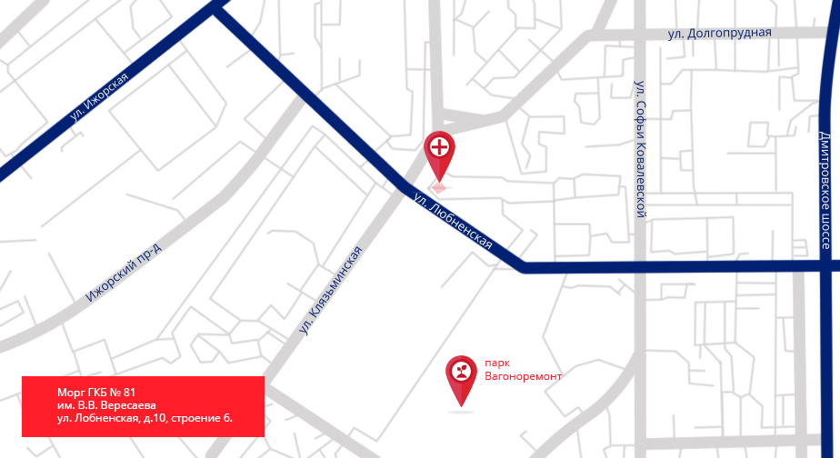 Точное местоположение морга ГКБ № 81 им. В.В. Вересаева на карте Москвы обозначено здесь.