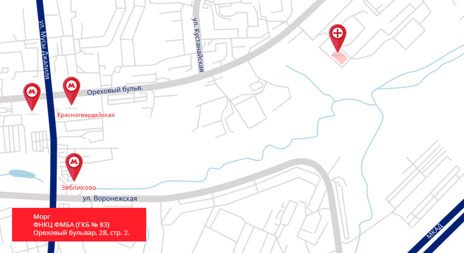 Местоположение морга ГКБ № 83 (ФНКЦ ФМБА) на карте Москвы обозначено здесь.