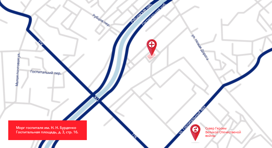 Адрес морга ГВКГ им. Н.Н. Бурденко: Госпитальная пл., 3, корп. 16.