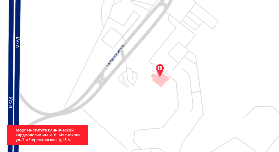 Адрес морга НМИЦ кардиологии: ул.3-я Черепковская, 15А.