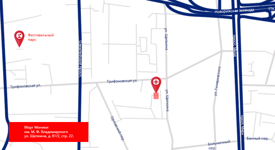 Адрес морга МОНИКИ им. М.Ф. Владимирского: ул. Щепкина, 61/2, строение 10.