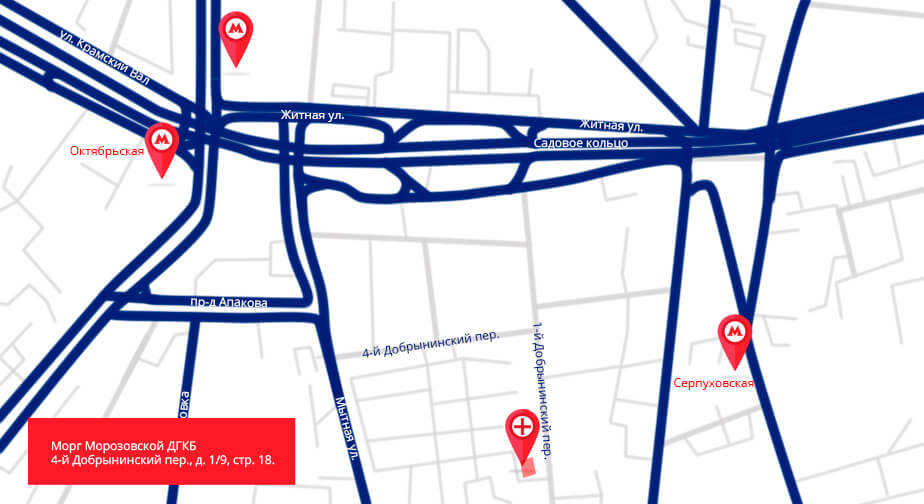 От ст. метро «Добрынинская» пройти к моргу 800 м пешком.